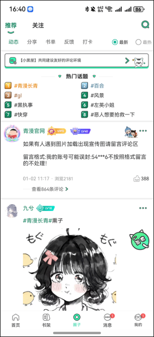 4. 互动氛围浓厚:不仅能独自享受娱乐,还能通过圈子、弹幕与同好互动,分享有趣书籍、探讨剧情走向,打破孤独看漫/听剧的壁垒。