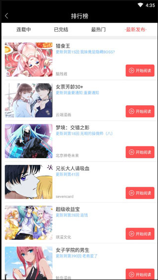 2. 在排行榜【最热门】分类板块中找到目标漫画,点击对应【开始阅读】按钮,进入漫画详情页面。