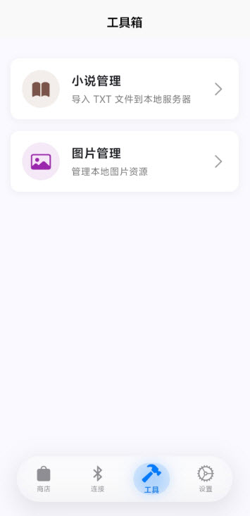5. 点击界面中的“工具”选项,在对应功能栏中可直接导入小说文件,拓展手表使用场景。