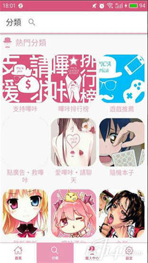 2. 打开软件进入主界面,切换到分类页,找到搜索按钮直接点击,就能快速检索想看的漫画,不用多余翻找。